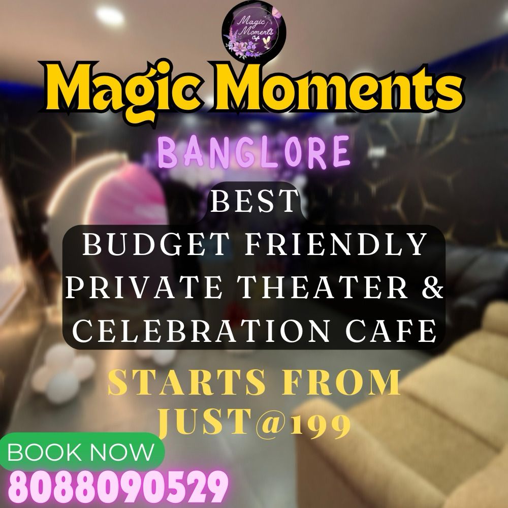 Welcome to Magic Moments Celebration Cafe, Bengaluru's premier private theatre destination. We specialize in crafting unforgettable experiences for life's special occasions. Whether you're celebrating a birthday, anniversary, proposal, or simply seeking a relaxing movie night, our bespoke theatre experience has got you covered.